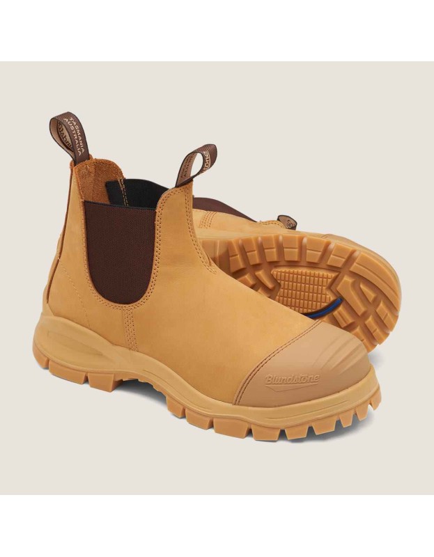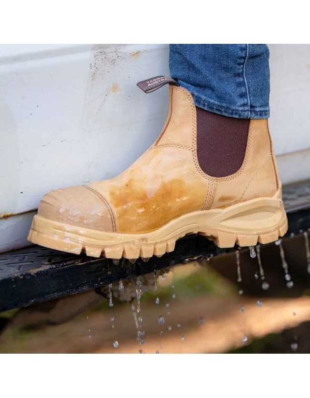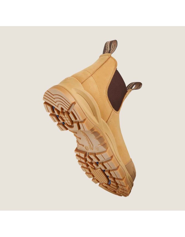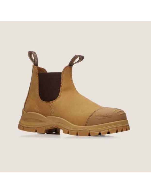 • Wheat premium quality, water-resistant nubuck leather elastic side safety boot.