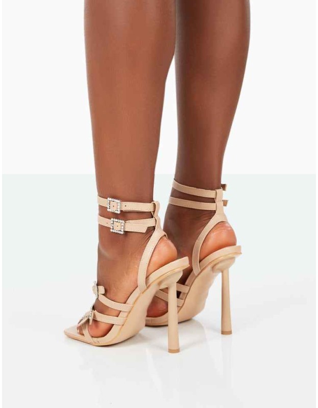 Lindsey Nude Pu Strappy Square Toe Stiletto Heels