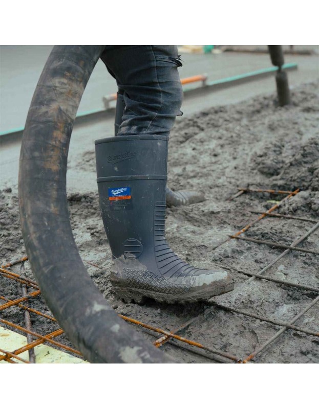 - Grey safety gumboot made to withstand harsh working environments like underground mining