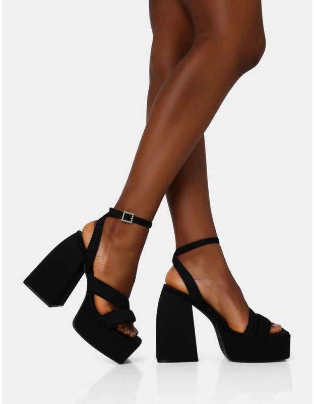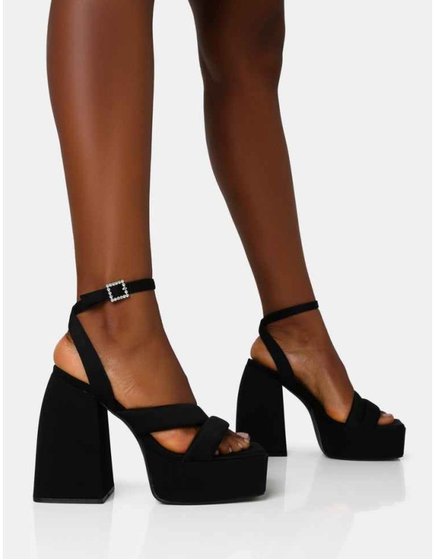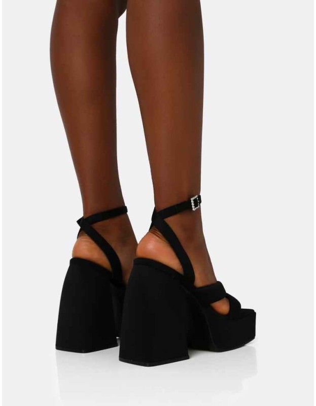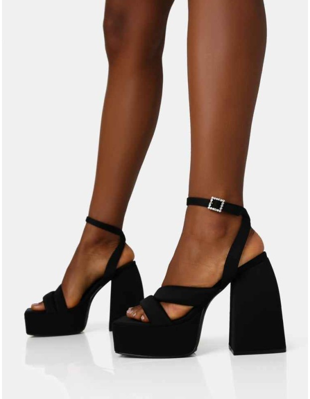 Money Honey Black Nylon Padded Square Toe Chunky Platform Block Heels