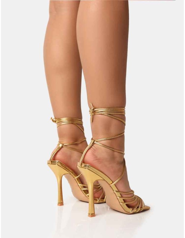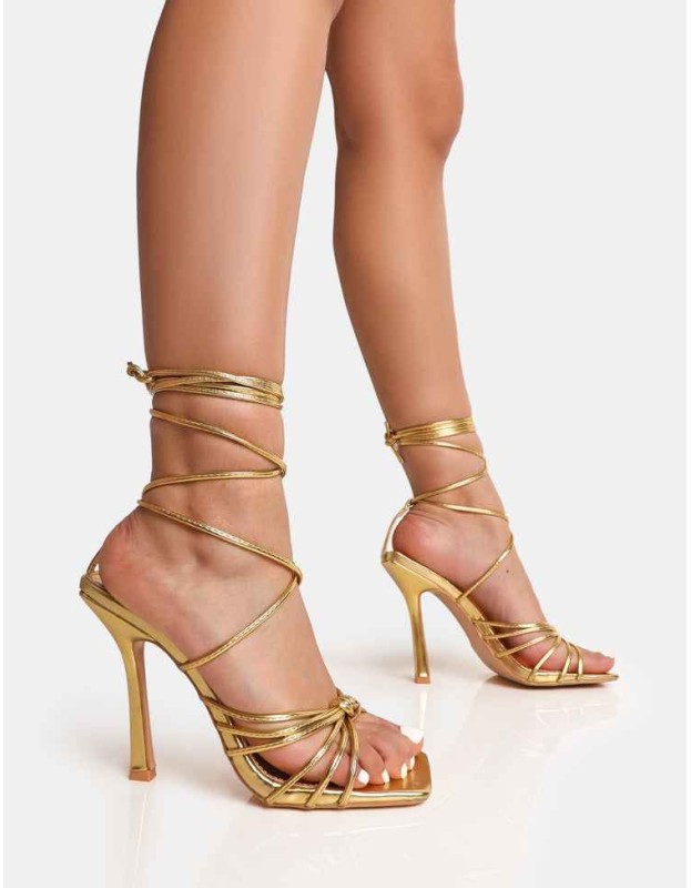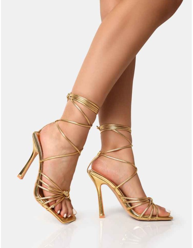 Aspen Gold Knot Strap Lace Up Square Toe Stiletto Heels