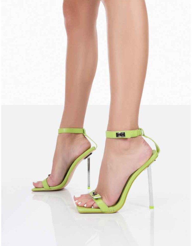 Dream Big Lime Pu Strappy Square Toe Stiletto Heels