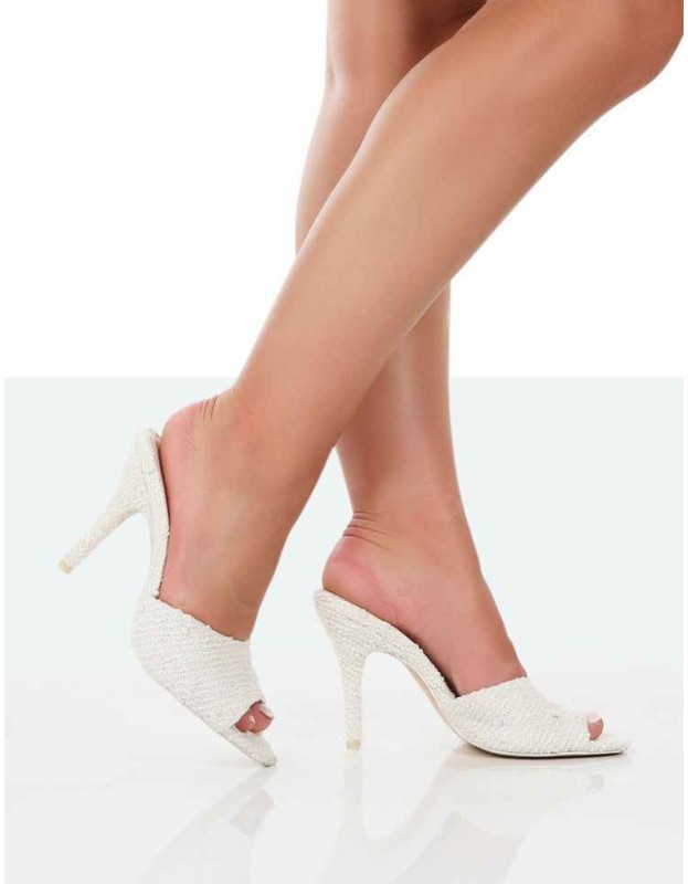 Tenzin Ecru Boucle Square Toe Heeled Mule