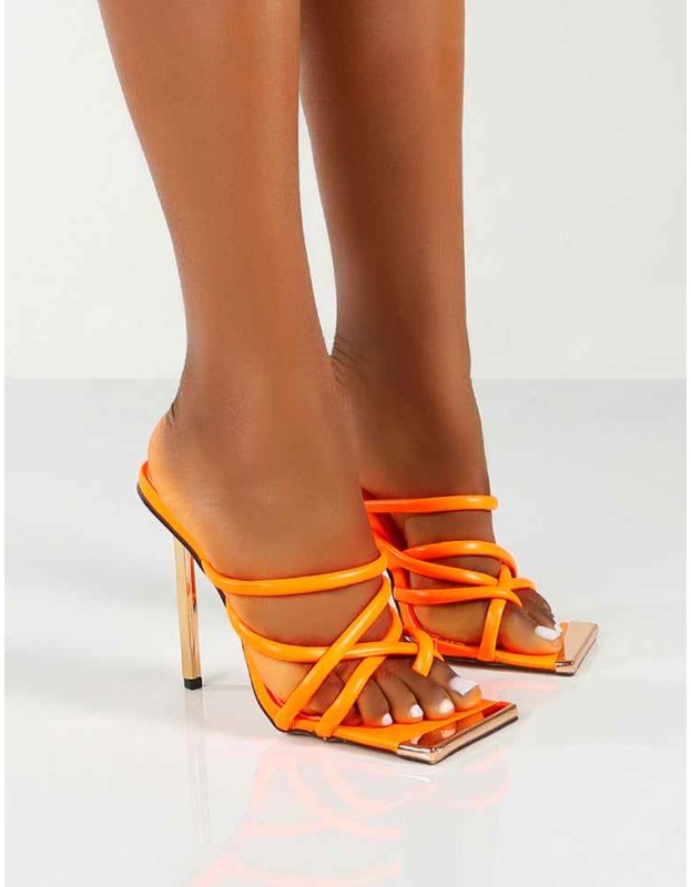 Coincidence Orange Strappy Square Toe Metallic Stiletto Heels