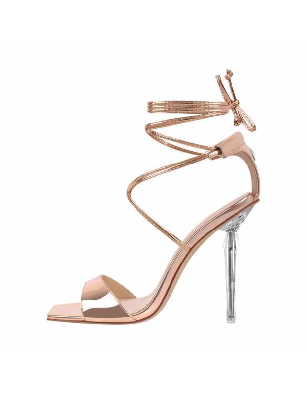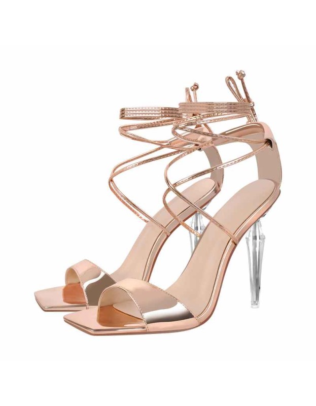Square Toe Lace-up Clear Heel Sandals